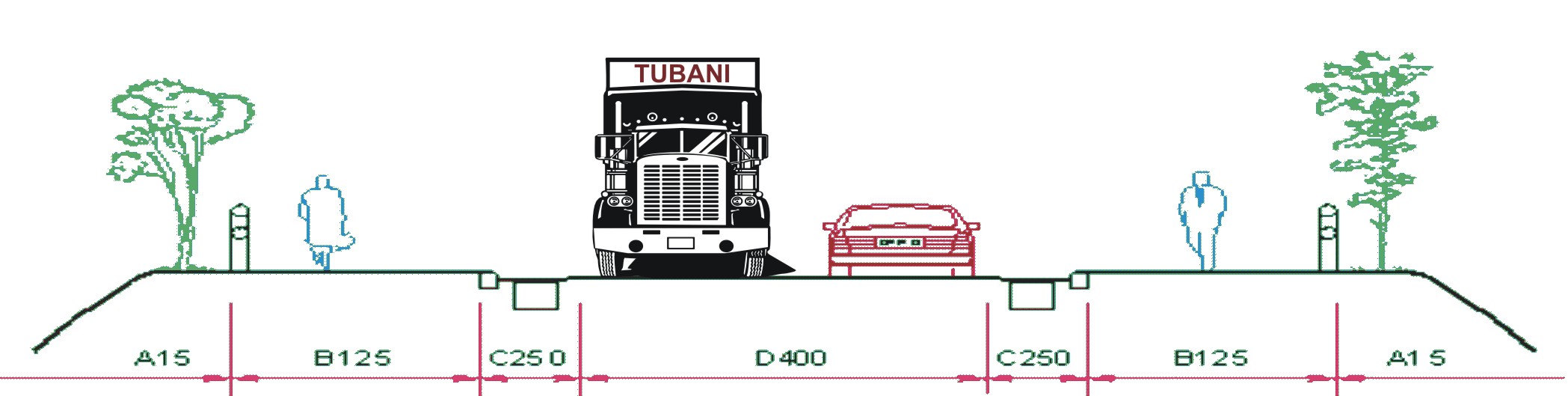 Carga de controle de 125 kN Classe mínima B-125